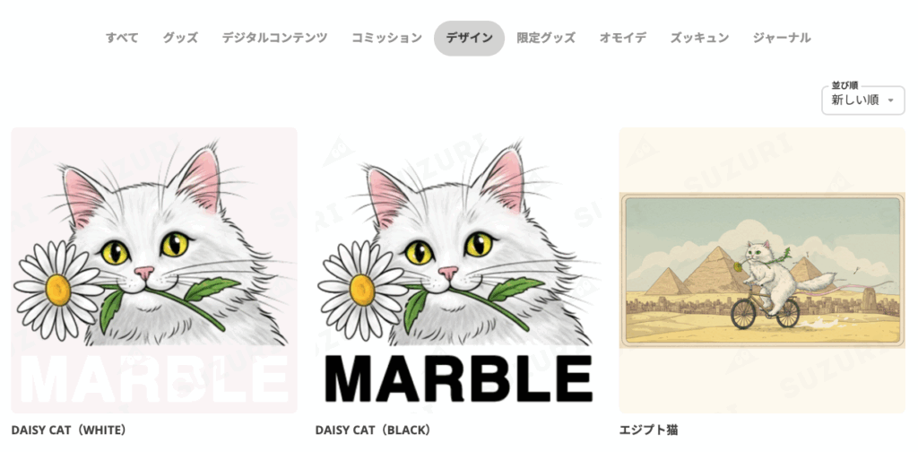 「SUZURI」のメニュー